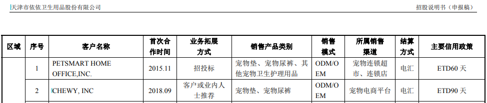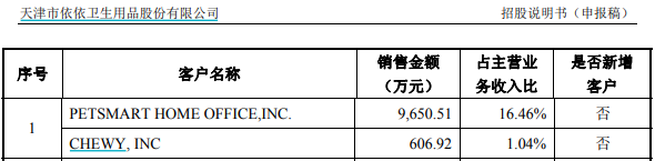 不僅如此,根據招股書披露的“北美地區”主要客户信息,依依股份將“PETSMART HOME FFICE,INC.”與“CHEWY,INC.”作為同一實際控制下的客户,合併計算銷售位列依依股份的第一大客户;但與此同時,招股書第173頁披露的“前五大客户的基本信息”中顯示,“PETSMART HOME FFICE,INC.”的業務拓展方式為招投標,而“CHEWY,INC.”的拓展方式為“客户或業內人士推薦”,針對同一實際控制的兩家不同主體,不論是銷售產品類別還是信用政策均完全一致,拓展方式卻存在本質不同,這也不符合正常的商業邏輯。