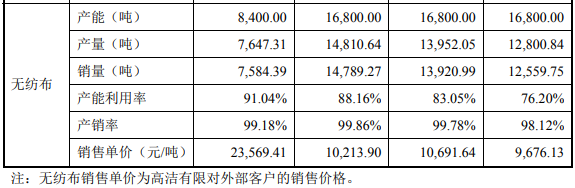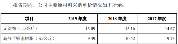 再來看依依股份的主業相關信息,該公司的主要產品包括無紡布,招股書披露,公司在2017年到2019年對外銷售無紡布的單價約為1萬元/噸,也即10元/公斤左右;招股書還披露依依股份的同行業可比公司包括2020年9月剛上市的豪悦護理,根據豪悦護理發佈的招股書顯示,該公司的主要原材料包括無紡布,但是採購價格則穩定在15元/公斤左右,比依依股份銷售無紡布的單價高出了約50%。