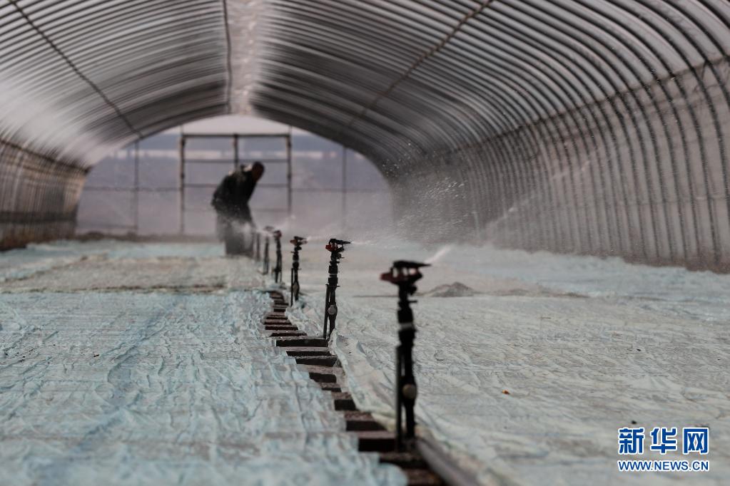 4月6日,河北省唐山市海港經濟開發區水稻種植合作社的社員在育秧棚內給秧盤澆水。 春季裏,隨處可見農民們辛勤勞作的身影,如同一幅幅生機勃勃的畫卷。 新華社發(李磊 攝)