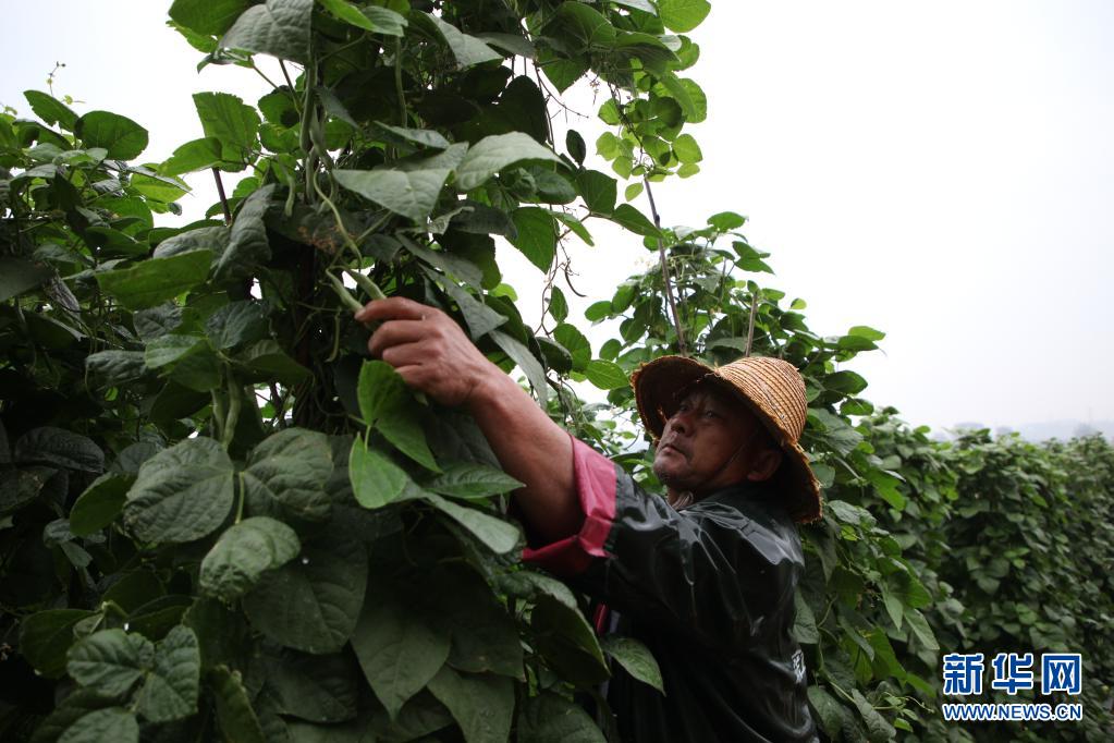 4月5日,雲南省紅河哈尼族彝族自治州建水縣臨安鎮莊子河村委會東山寨村的農民在採摘四季豆。 春季裏,隨處可見農民們辛勤勞作的身影,如同一幅幅生機勃勃的畫卷。 新華社發(楊俊鵬 攝)