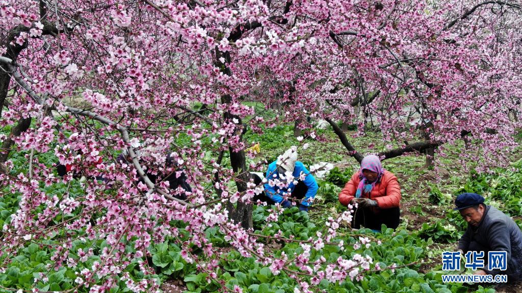 4月6日,甘肅省隴南市宕昌縣城關鎮玉地河村羣眾在桃樹下采挖小白菜。 春季裏,隨處可見農民們辛勤勞作的身影,如同一幅幅生機勃勃的畫卷。 新華社發(劉輝 攝)