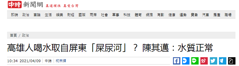 高雄民生用水取自“屎尿河”?!市長陳其邁説“水質正常”……