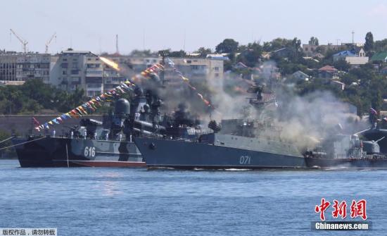 資料圖:俄羅斯海軍在黑海舉行海軍日閲兵彩排,多種軍艦和武器集中亮相。