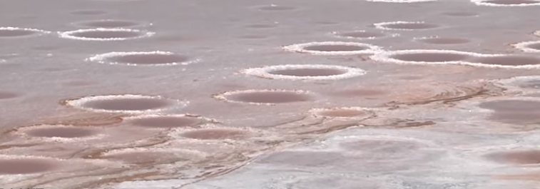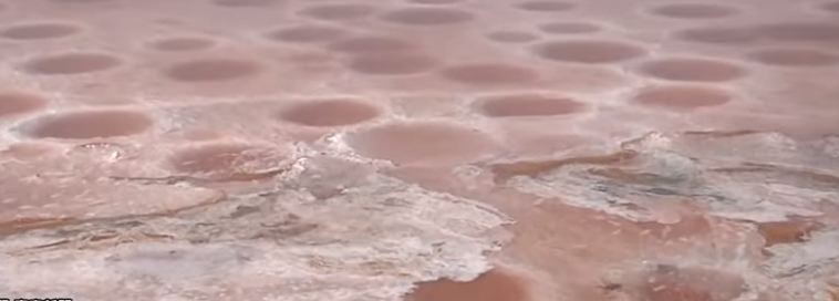 據台灣東森新聞12日報道,這處廢棄鹽田早就不再曬鹽,但鹽田表面近日卻出現“紅色景狀”,搭配一圈圈凹洞痕跡,景緻相當特別。七股鹽山旅遊科專員莊詒鈞解釋了形成這一景象的原因:“這主要是乾旱所致,海水蒸發曬出來之後,圓圈周邊一圈圈圓圓的就是曬出來的粗鹽,顏色的話則是因為海水中的過渡元素和一些藻類結合所呈現,所以每一個時期都會有不同的顏色。”