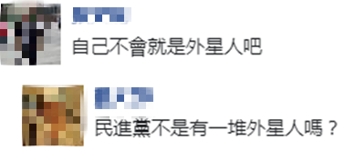 也有島內網友諷刺,“自己不會就是外星人吧。”“民進黨不是有一堆外星人嗎?”