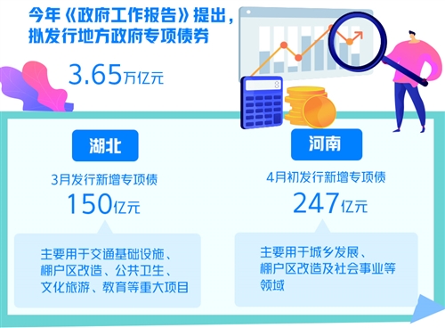 當前各地公佈的資金投向也説明了這一點。比如,湖北3月發行新增專項債150億元,主要用於交通基礎設施、棚户區改造、公共衞生、文化旅遊、教育等重大項目。河南4月初發行新增專項債247億元,資金主要用於城鄉發展、棚户區改造及社會事業等領域。