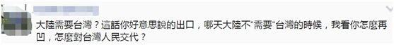對於簡舒培的這番辯辭,有島內網友批評稱:“大陸需要台灣?這話你好意思説的出口,哪天大陸不‘需要’台灣的時候,我看你怎麼再凹,怎麼對台灣人民交代?”↓