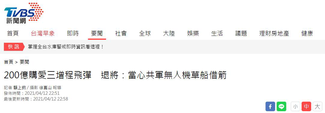 台灣花重金採購“愛國者3”增程型導彈,台退役將領:怕解放軍用無人機重演“草船借箭”