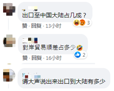 “出口到大陸應該快佔了快一半,而且一直增長。”有網友這樣提醒。