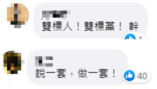 “雙標人!雙標黨!”更有人直斥民進黨當局,“説一套,做一套!”