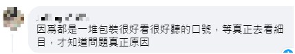 也有網友表示,“因為都是一堆包裝很好看很好聽的口號,等真正去看細目,才知道問題真正原因”。