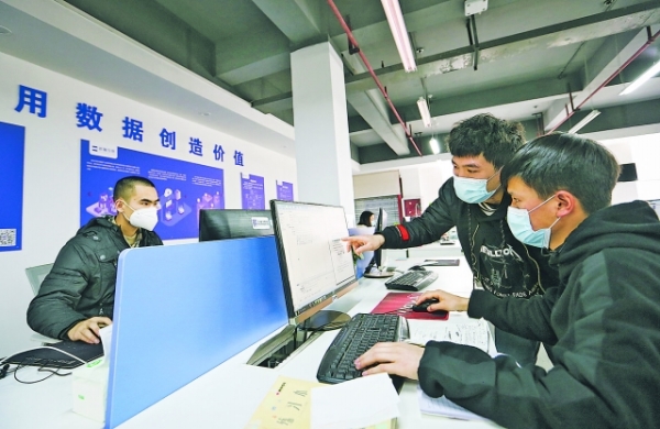 位於花溪大學城雙創園的貴州數聯科技有限公司員工正在專注處理數據。