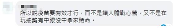 還有網友説,疫苗要有效才行,而不是讓人膽戰心驚,又不是在玩抽獎有中跟沒中拿來賭命。↓