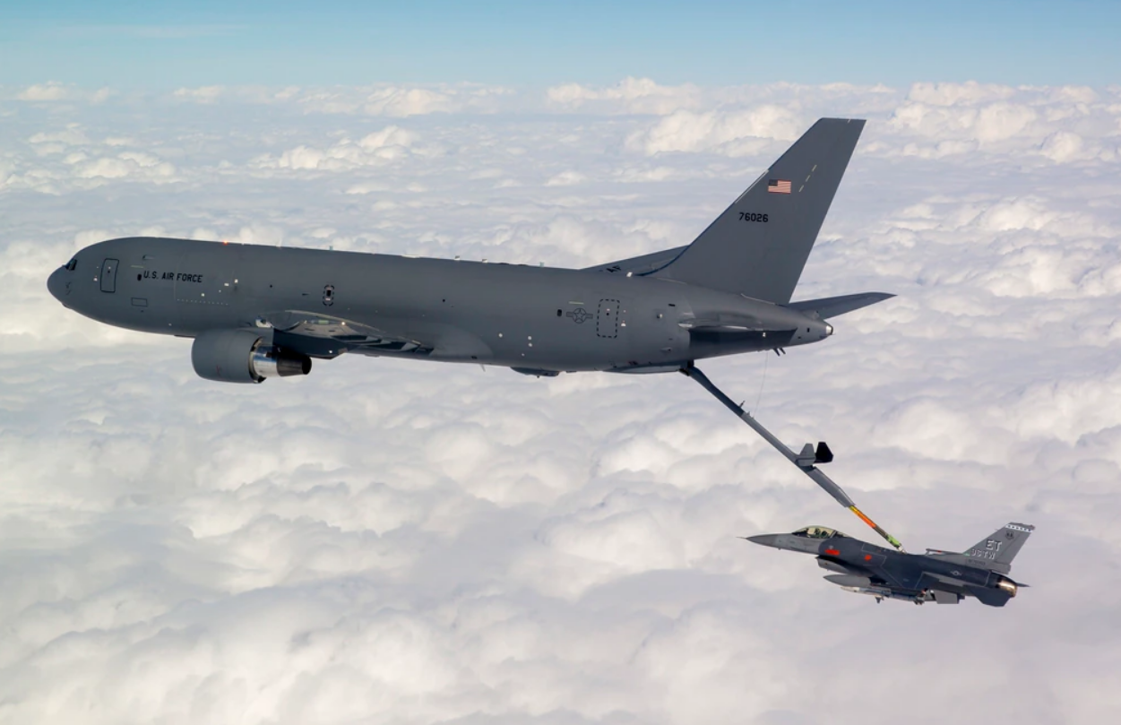 美國空軍的KC-46加油機為F-16戰鬥機加油