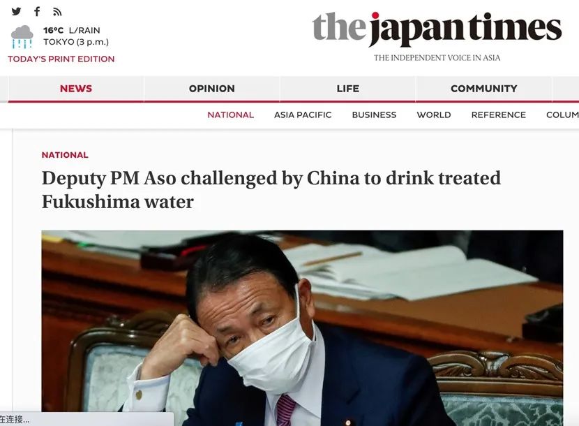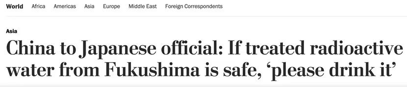 反觀外媒,對於中國外交部向日方嚴詞抗議一事給予以了大量報道。其中外交部發言人趙立堅針對日本個別官員稱“這些水喝了也沒事”,而駁斥“請他喝了再説。”被外媒輪番“炒作”,彭博社在報道此事時稱,“中國反激日本官員喝福島核廢水”。《華盛頓郵報》也報道稱,“中國對日本官員説:如果福島放射性污水經過處理是安全的,請乾一杯”。而《日本時報》則直接點名稱,“中國向日本副首相麻生太郎發起福島核污水’挑戰‘,你倒是喝一杯啊”。