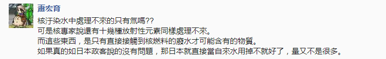 也不乏網友提到,“核污染水中處理不來的只有氚嗎??可是核專家説還有十幾种放射性元素同樣處理不來。而這些東西,是隻有直接接觸到核燃料的廢水才可能含有的物質。如果真的如日本政客説的沒有問題,那日本就直接當自來水用掉不就好了,量又不是很多。”↓