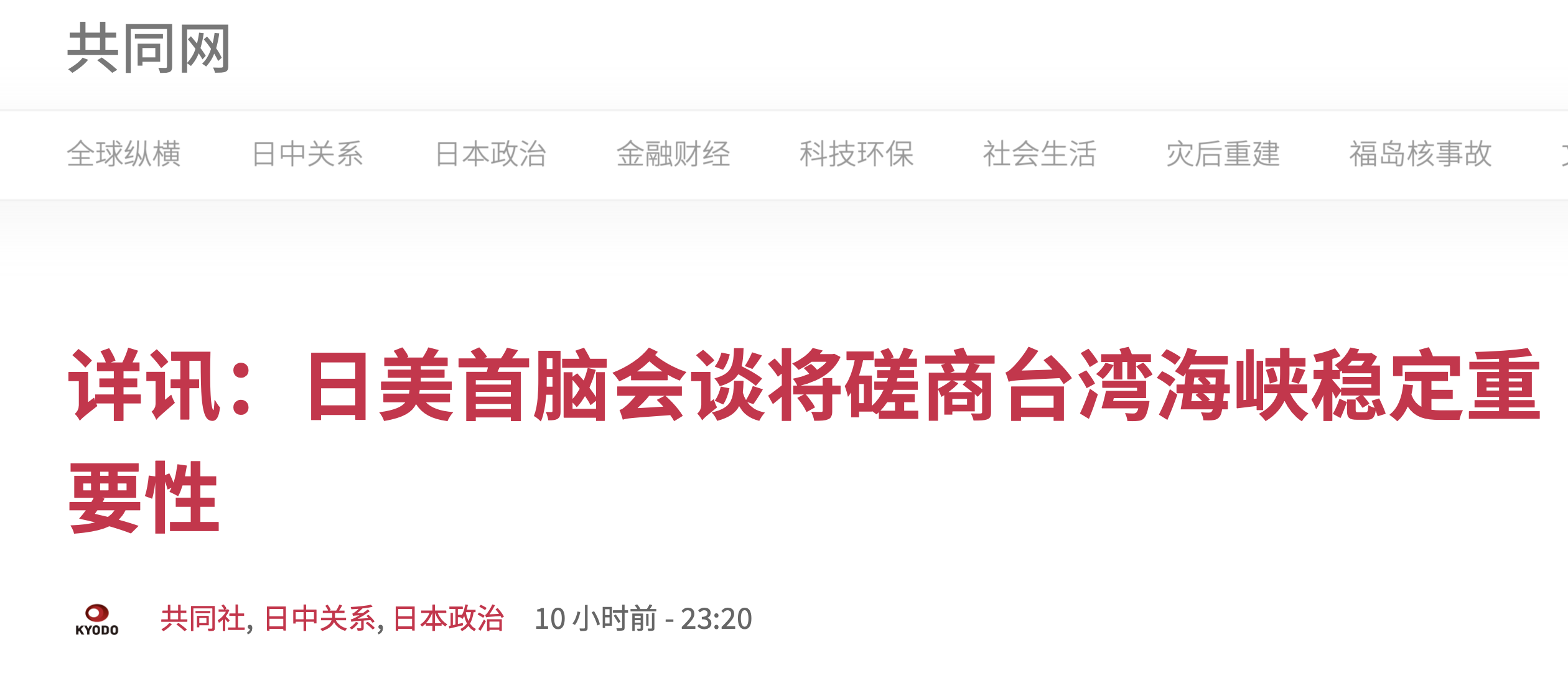 日媒:日美首腦16日會談將提“台海和平穩定重要性”,可能寫入聯合文件