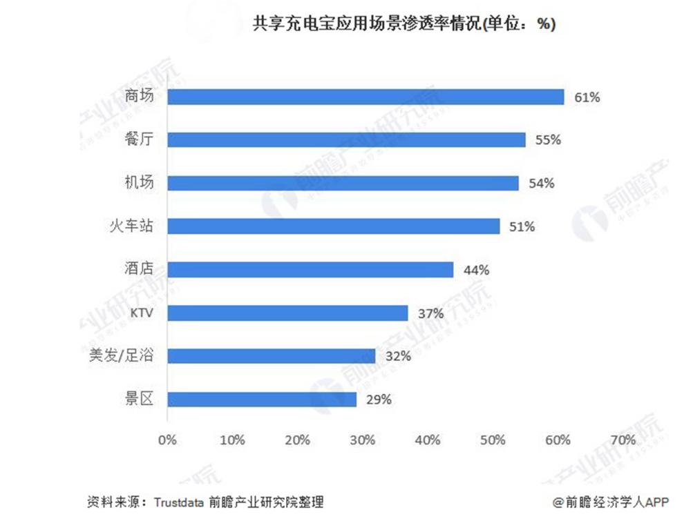 此外,雖然共享充電寶行業這幾年迅速發展,總用户規模從2017年的0.8億人增長到2020年的2.9億人,總市場規模在2020年也突破了95億元,但是根據TrustData統計數據顯示,共享充電寶的應用場景滲透率並沒有達到飽和狀態,特別是在景區的滲透率甚至不足三成。而且共享充電寶的市場主要集中在一二線城市,三四五線城市還有大量的用户紅利存在,所以共享充電寶行業的待挖掘空間仍非常可觀。