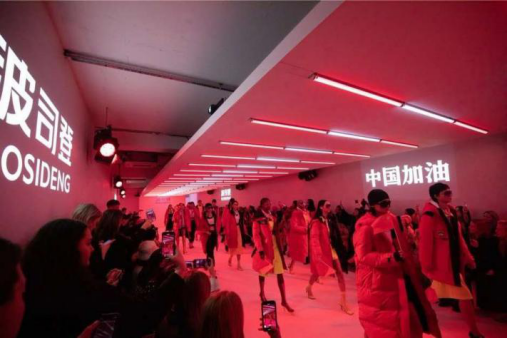 波司登還努力在國際上為中國時尚發聲。在2018年米蘭時裝週上,波司登以“牖”為系列主題,將中國神韻融於設計之中,運用窗格、水墨古畫等中國元素和形式,把工匠的專注精神與波司登多年來專注羽絨服的理念融入其中,讓國內外都看到了不一樣的波司登,不一樣的中國服裝潮流。2020年倫敦時裝週上,波司登又將“中國紅”帶上國際舞台。秀場上一聲聲的“中國加油”,讓世界都看到疫情之下的中國依然活力無限,國內各大媒體也紛紛點贊波司登。