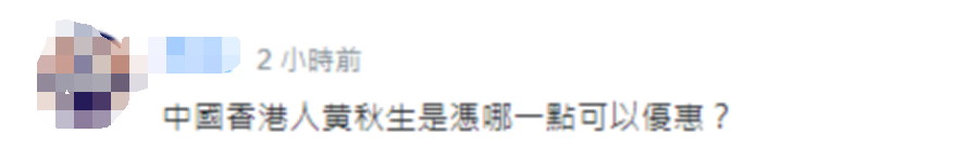 “憑什麼給他享有健保?!”“黃秋生是憑哪一點可以優惠?”有不少島內網民質疑。↓