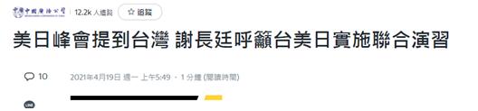 【環球網報道 記者 康博浩】據台灣“中國廣播公司”19日報道,對於日本首相菅義偉與美國總統拜登首次舉行會談,“駐日代表”謝長廷18日宣稱,“台美日”有必要儘快實施聯合演習。此消息一出,引來島內網友的一片罵聲,有網友怒批謝長廷為“漢奸倭奴”。