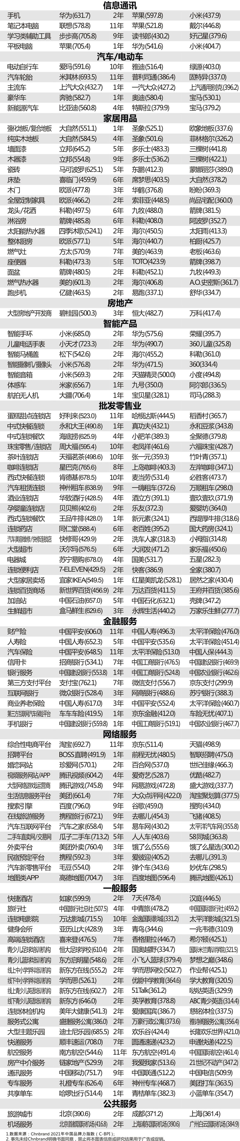 2021年C-BPI調查區域覆蓋全國100個城市,調查對象為15歲到64歲之間的常住居民,並根據性別、年齡、收入進行隨機抽樣,總樣本數量為2785000個,採用線上線下相結合的調查方式完成,覆蓋203個細分行業,涉及被評價主流品牌10100餘個。