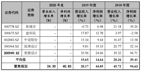 2018年至2020年,蕾奧規劃的營業收入分別為32,976.53萬元、39,628.50萬元和49,257.94萬元;歸屬於母公司股東的淨利潤分別為4,649.74萬元、6,697.96萬元和9,432.79萬元。2019年和2020年,蕾奧規劃的營業收入同比增長率分別為20.17%和24.30%,歸屬於母公司股東的淨利潤同比增長率分別為44.05%和40.83%,均在行業內保持較高水平,業務規模和利潤水平快速增長。(見表二)