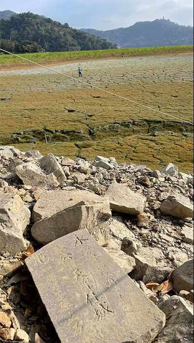 台灣中部持續乾旱,日月潭水位見底,呈現難得一見的草原景象,很多台灣民眾在日月潭邊“淘寶”,返現很多沉沒潭底的物品。17日,有網友在臉書發帖分享了一位島內網友拍攝的照片,稱該網友在日月潭岸邊觀光時發現一塊疑似“古蹟”,圖片顯示,石碑中間則是“蔡公謹天碑佳城”,右側刻有“乾隆丙寅年修”,按照年曆對照,即乾隆11年(1746年),石碑距今已有275年曆史。