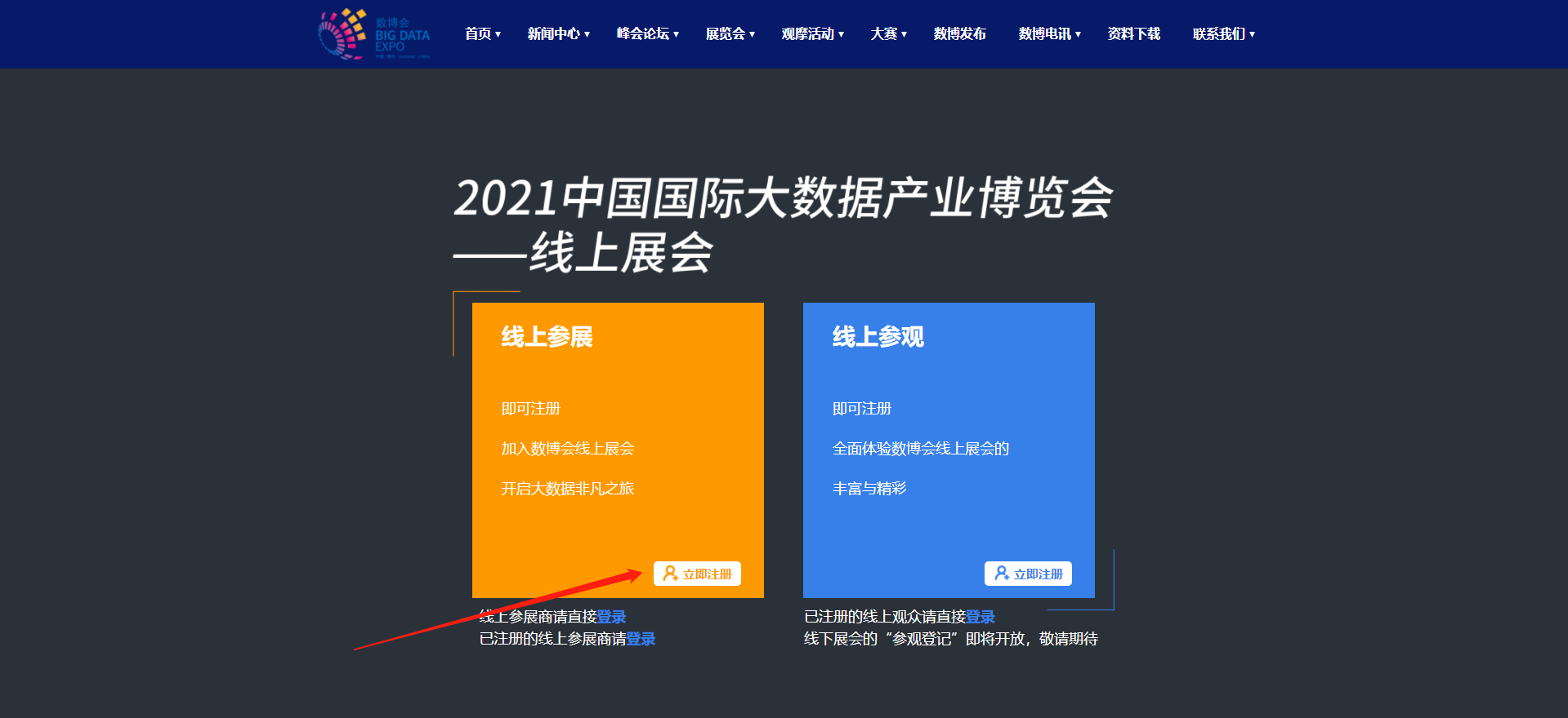 進入2021大數據產業博覽會——線上展會,點擊“立即註冊”;