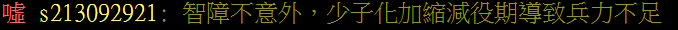 還有網友諷刺民進黨當局“低能作秀”,“智障不意外,少子化加縮減役期導致兵力不足。”