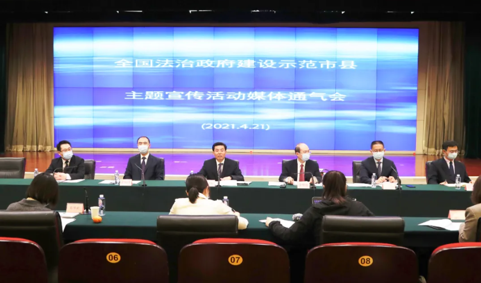 4月21日上午,司法部舉行全國法治政府建設示範市縣主題宣傳活動媒體通氣會。