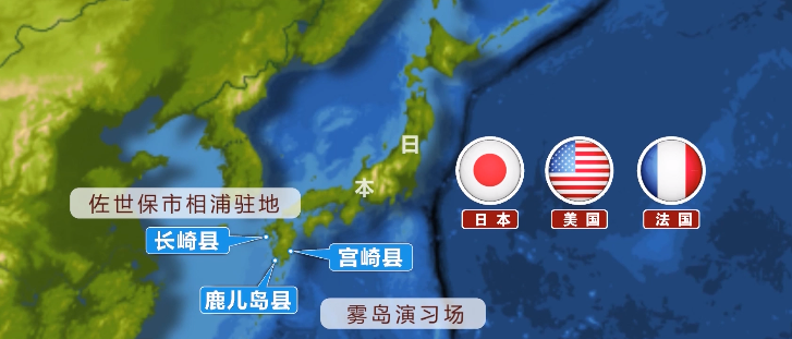 日本防衞省稱,這是日美法三國陸上部隊首次在日本國內正式訓練。共同社報道説,訓練旨在對中國的海洋活動加以牽制。