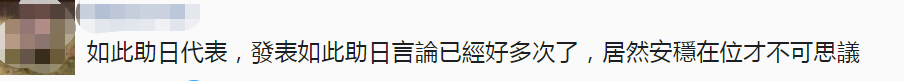 還有網友質疑,如此“助日代表”,發表如此助日言論已經好多次了,居然安穩在位才不可思議。↓