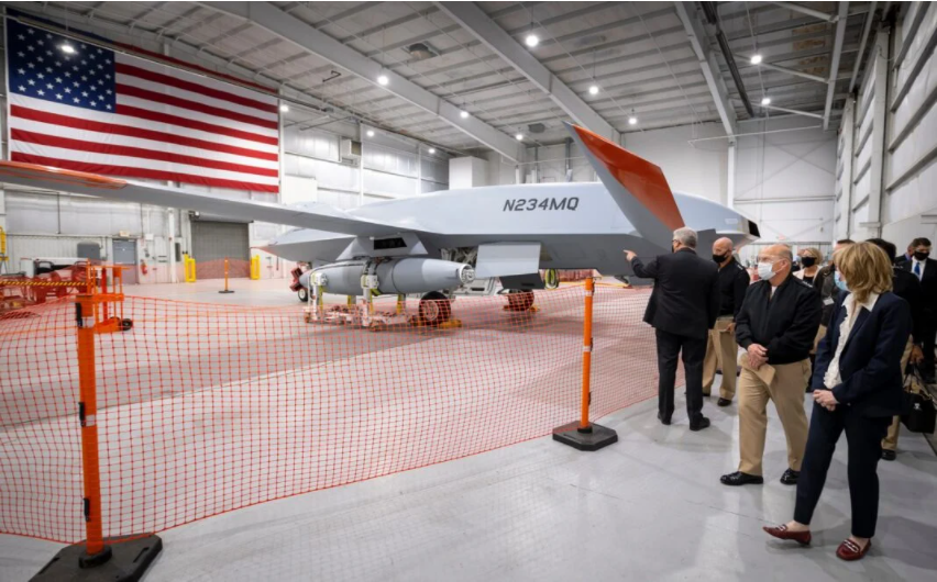 美軍上將參觀航母艦載無人加油機生產線,稱其對美國海軍至關重要