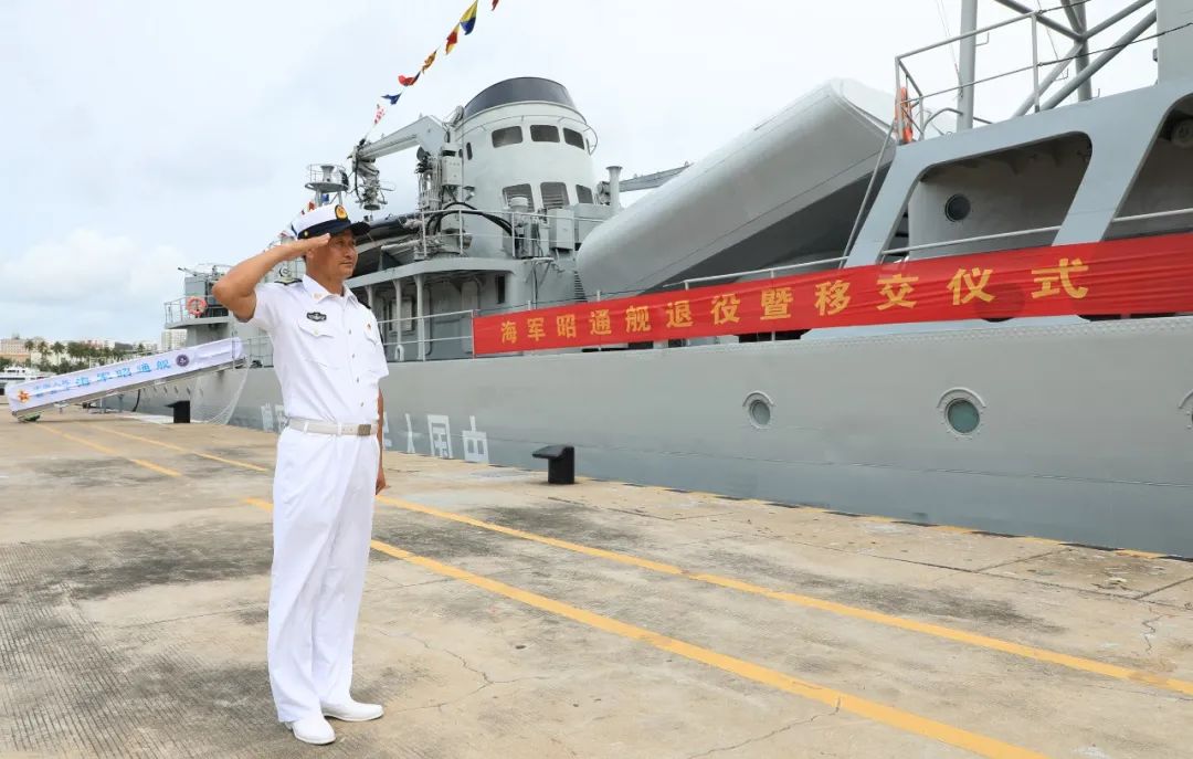 4月26日,海軍昭通艦退役暨移交儀式在三亞某軍港舉行。南部戰區海軍某基地領導,青島市、昭通市有關負責同志,以及某基地官兵代表在碼頭整齊列隊,氣氛莊嚴隆重。