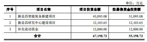 據招股書顯示,新益昌此次擬向社會公眾公開發行不超過人民幣普通股(A股)2,553.36 萬股,募集資金5.51億元,將投資於以下項目:
