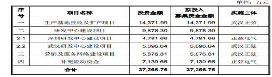 招股書顯示,正弦電氣此次公開發行的A股不超過2150.00萬股,擬募集資金37,266.76萬元,其中14,371.99萬元用於生產基地技改及擴產項目,9878.30萬元用於深圳、武漢的研發中心建設項目,5876.81萬元用於營銷及服務網絡建設項目,7139.66萬元用於補充流動資金。