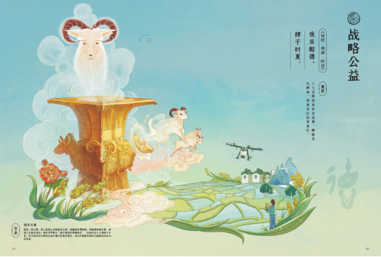在“戰略公益”的章節,報告取《詩經·周頌·時邁》中的“我求懿德,肆於時夏。”作為標題,寓意“三七互娛投身社會責任發展,賦能多元羣體,用責任讓改變發生。”,同時在設計中還融入了四羊方尊、“千秋萬世”瓦當等契合責任議題的元素。