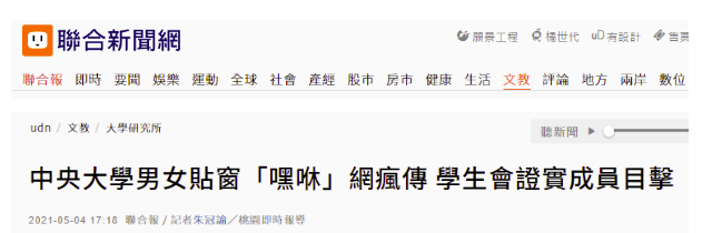 台灣“中央大學”一對男女窗邊不雅照網上瘋傳,學生會證實:已達“難以收拾”地步不要再傳