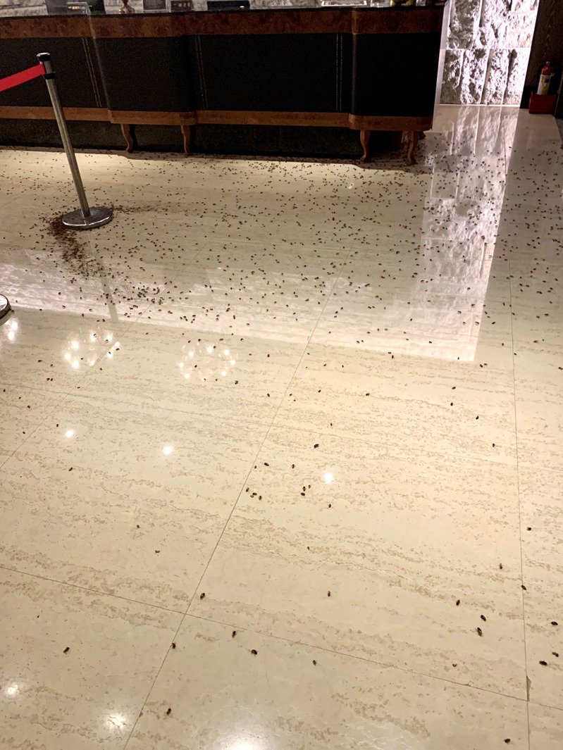 台灣警界高層聚餐兩黑衣人扔下兩袋蟑螂,上千只滿地亂竄