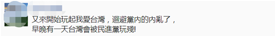 對於“綠委”這次又搞小動作,有島內網友批評民進黨當局很會作秀:“又來開始玩起我愛台灣、迴避黨內的內亂了,早晚有一天台灣會被民進黨玩殘!”↓