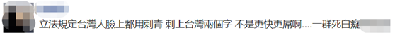 有網友諷刺,應立法規定台灣人臉上都用刺青刺上“台灣”兩個字不是更快更屌啊……一羣死白痴。↓