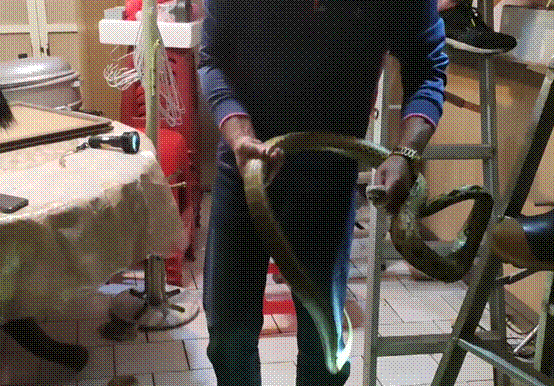 據報道,女屋主6日發現屋內天花板垂下一條“粗繩”,走近一看卻看到繩子會蠕動,這時才發現是一尾巨大的“臭青母”(學名:王錦蛇)的蛇尾巴,嚇得狂奔出門報警,金山消防分隊隊員趕到場後,2名消防隊員發現蟒蛇體型碩大,立即請求隊上加派人力支援,等到支援到後,這尾大蟒蛇依然不為所動,經過消防隊員一番功夫,利用專業知識與技巧,還在蟒蛇旁安撫讓它配合放軟身體,終於順利成功拉出大蟒蛇。