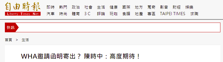 第74屆世界衞生大會(WHA)將於5月24日召開,照往例,預計明天(10日)受邀國家就會收到邀請函。郭正亮説完這些話後,據台灣《自由時報》報道,對於近日國際聲援台灣力道加強,要求世界衞生組織(WHO)邀請台灣以觀察員身份參與第74屆WHA。陳時中今天(9日)在指揮中心記者會上聲稱,他“高度期待!”他聲稱,國際很多重要單位都有共識,表達希望台灣可以與會,對於收到邀請函,台灣抱持“高度期待”。
