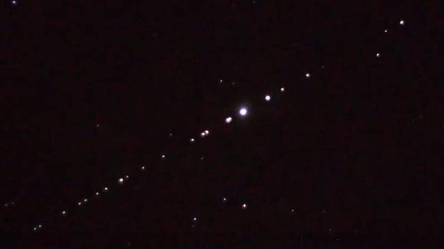 天文專家説,這些發光體是易識別的“星鏈”衞星,它們“像一串珍珠,一個挨一個”運行在較低的同一軌道。