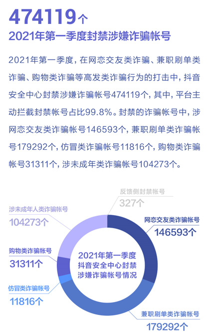 抖音發佈2021年一季度網絡詐騙治理數據報告:封禁詐騙帳號47萬個