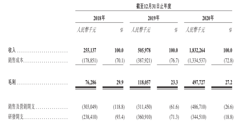 4月1日,創辦了中國首家互聯網醫院的微醫向港交所正式遞交了招股書。微醫招股書顯示,2020年,微醫總營收為18.32億元人民幣,相較2019年同比增長262%,毛利率為27.2%,相較2019年的23.3%獲得較大提升。微醫從2018年至2020年,三年營收的年複合增長率高達168%。與此同時,微醫的虧損率從2018年的163%大幅收窄至2020年的47%。