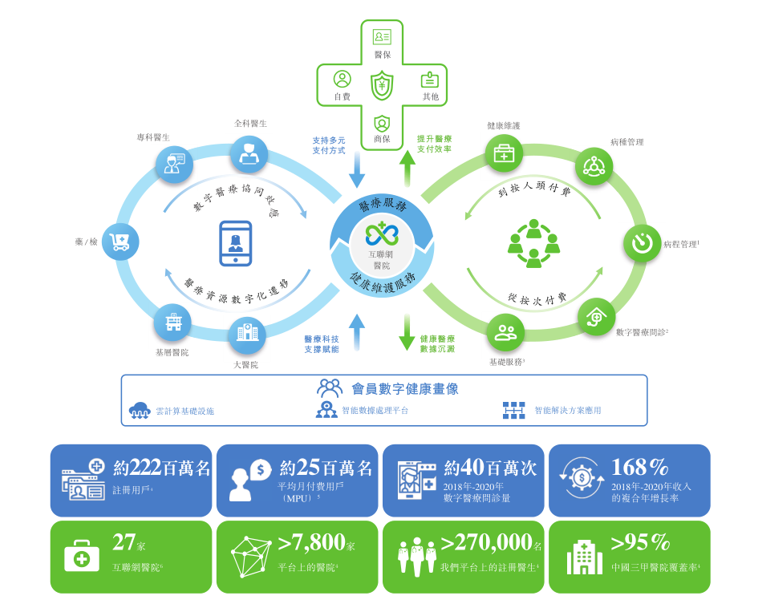 而平台的技術底座,則在整個價值循環的過程中,提供技術支撐,形成會員數字健康畫像賦能各端,並不斷沉澱更多的健康醫療數據。