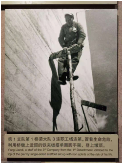 在鐵道兵紀念館最後一個展廳,播放着一段名為《最後的軍禮》的視頻,視頻中的鐵道兵含淚摘下軍帽,告別旌旆逶迤礙石間的歲月——1984 年,一個軍兵種消失於中國人民解放軍序列,鐵道兵部隊集體轉業併入鐵道部, 5萬官兵脱下軍裝,義無反顧衝進市場經濟大潮,搏風擊浪,發展成為今天的中國鐵道建築集團有限公司。