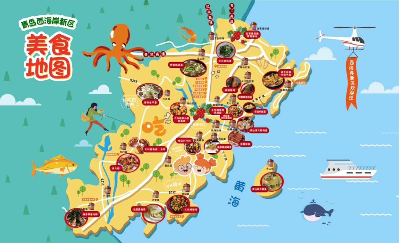 活動現場發佈了“青島西海岸新區美食地圖”,該地圖以“踏青尋味”為主題,將打造以踏青旅遊、休閒、生活、觀光、娛樂為一體的鎮街尋味特色路線,涵蓋了王台街道、六汪鎮、泊裏鎮等15個鎮街,詳細介紹了王台蠔艮魚、六汪塔橋全羊、泊裏西施舌等近百種特色菜品,展示了新區獨有的美食文化。